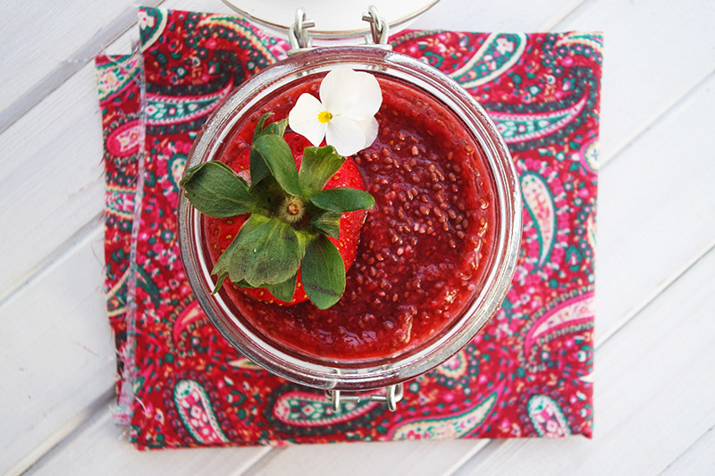 There is nothing quite like a delicious homemade strawberry jam. The mix of sweet and tart spread on some warm toast or squished into a fresh croissant. This jam is not the traditional sort, it is a really quick and easy kind that you can make with nearly any fruit in no time at all. It is free of refined sugar, doesn’t require cooking and only takes 4 ingredients, so it is basically healthy jam…I bet you didn’t think there was such a thing!